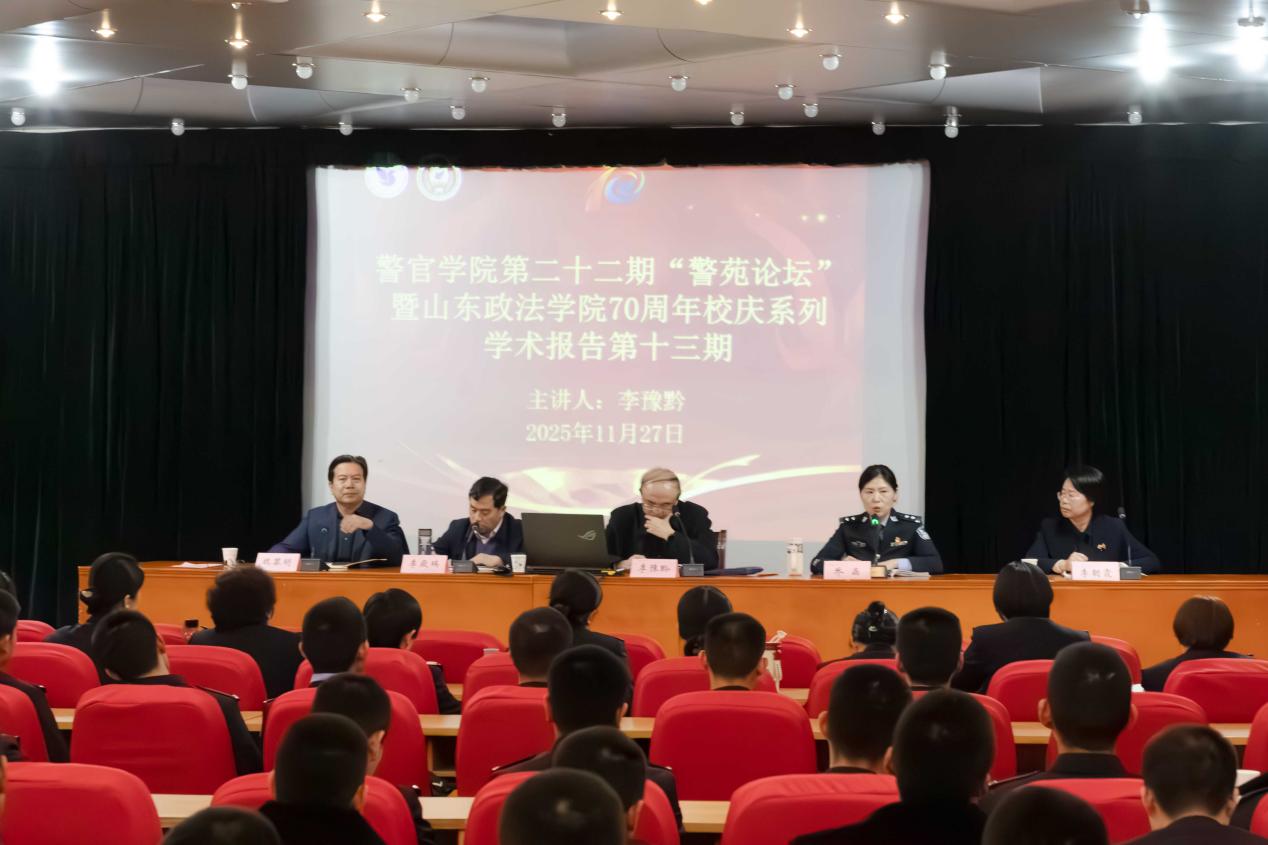 为进一步提升学院师生法治素养与专业能力,11月27日,警官学院在图书馆五楼学术报告厅举办第二十二期“警苑论坛”。本次论坛特邀中国监狱工作协会副会长、原司法部监狱管理局常务副局长李豫黔作专题报告。山东省监狱管理局二级警务专员李厥瑞、山东省第二女子监狱副监狱长乔晶、警官学院副院长李朝霞作为与谈人参加论坛。山东省女子监狱、山东省女子第二监狱有关负责人,警官学院师生代表等参加活动。警官学院院长魏黎明主持论坛。