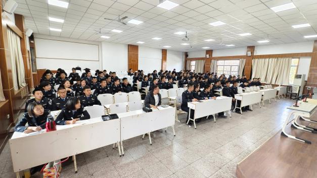 杨志伟对刁海旭校友表示欢迎,并鼓励同学们以学长为榜样,严守纪律、提升能力,为今后服务社会、维护平安奠定基础。